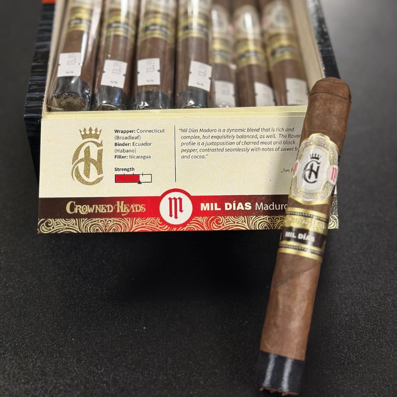 The Crowned Heads Mil Días Maduro Sublime is a bold and luxurious cigar crafted for those who appreciate deep, layered complexity. This maduro expression adds extra richness to the Mil Días line, delivering a full-flavored experience with notes of dark chocolate, espresso, black pepper, and sweet baking spices. Smooth yet powerful, it offers a long, satisfying finish that showcases the expert blending of Crowned Heads.